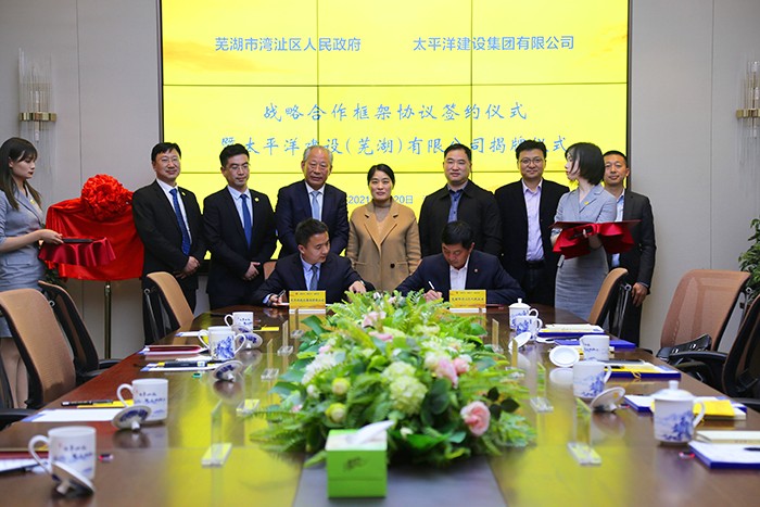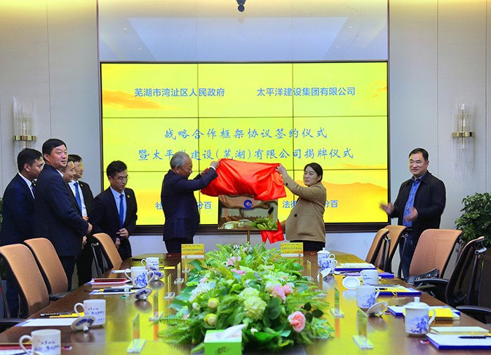 4月20日,莊嚴(yán)文旅與安徽省蕪湖市灣沚區(qū)人民政府戰(zhàn)略合作框架協(xié)議簽約暨太平洋建設(shè)(蕪湖)有限公司揭牌儀式在淮安地球村順利舉行。嚴(yán)介和理事長、蕪湖市灣沚區(qū)委書記韋秀芳出席儀式并共同揭牌。莊嚴(yán)文旅董事局主席胡童與蕪湖市灣沚區(qū)副區(qū)長翟發(fā)金分別代表雙方簽約。