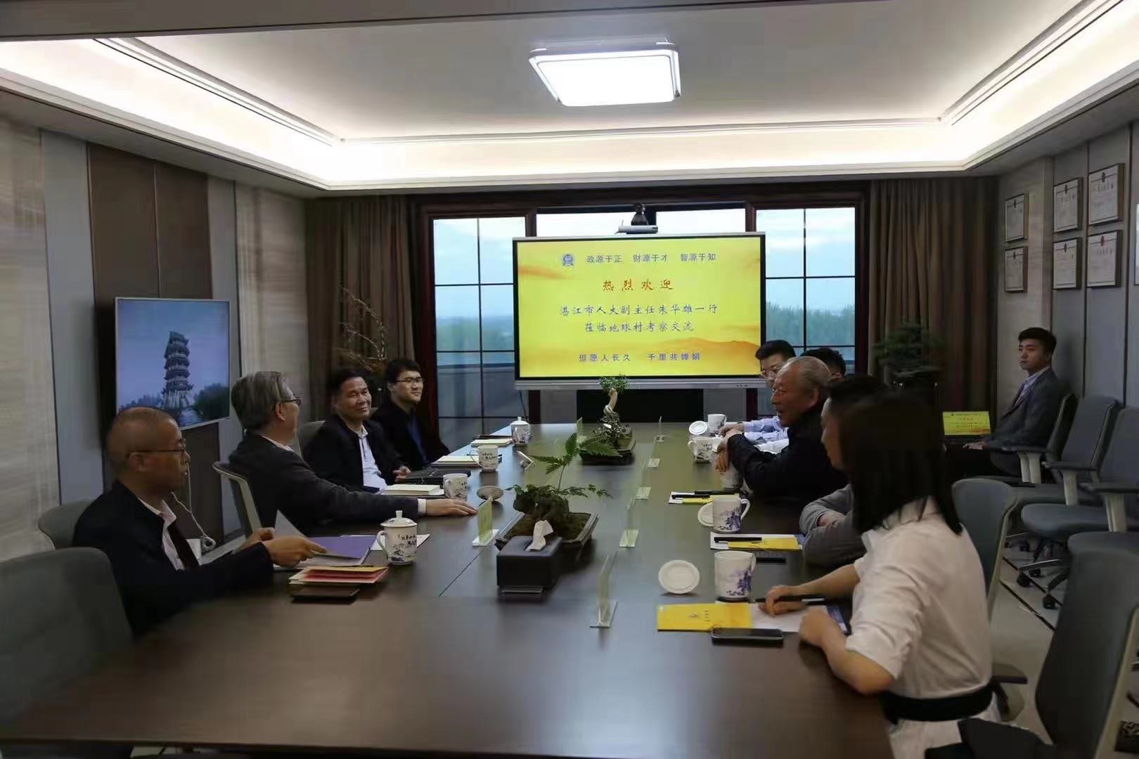 5月1日,嚴(yán)介和理事長(zhǎng)在地球村同廣東省湛江市人大常委會(huì)副主任、市總工會(huì)主席朱華雄會(huì)談,雙方共話合作,暢談未來。