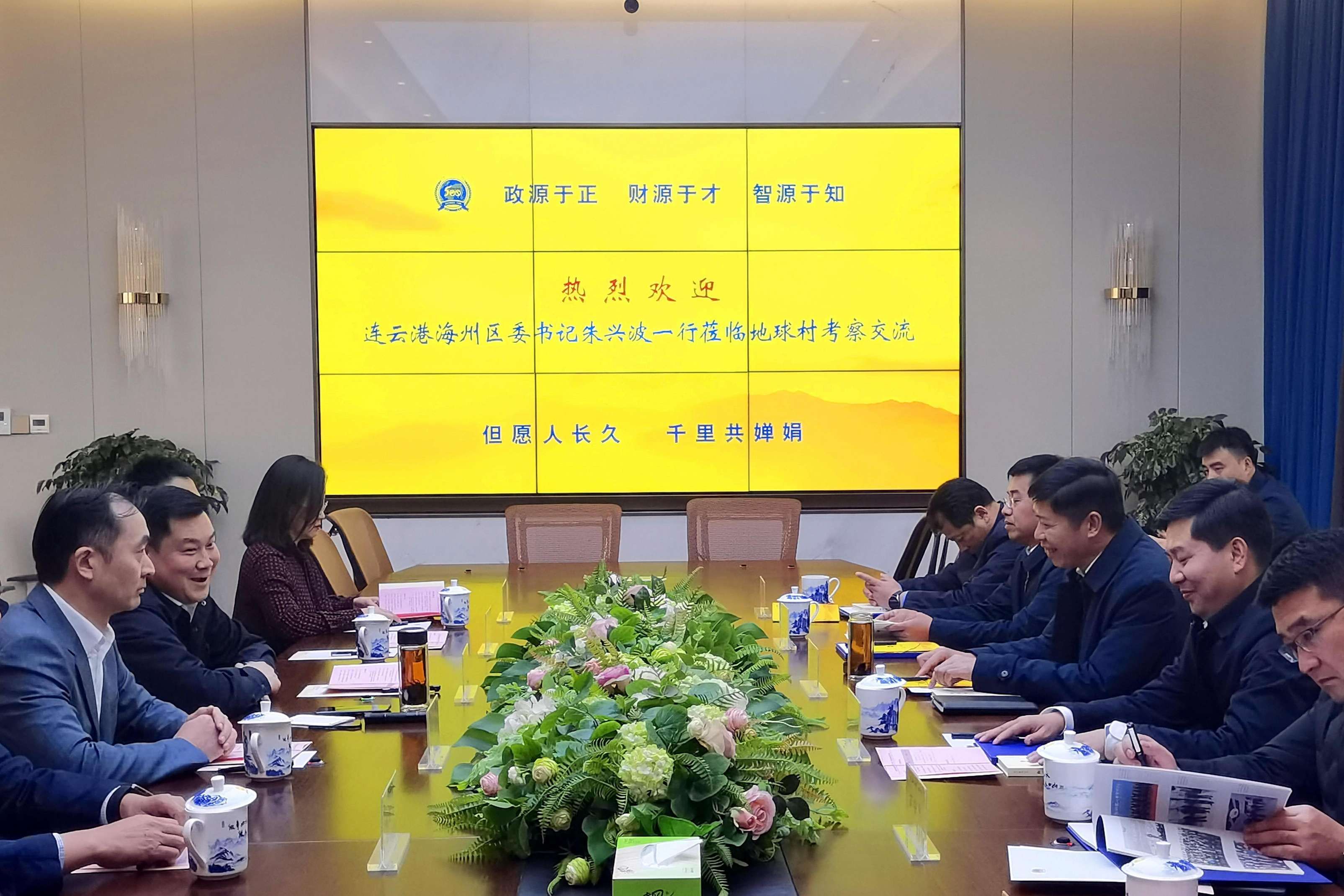 12月30日,嚴昊主席在地球村會見江蘇連云港海州區(qū)委書記、高新區(qū)黨工委書記朱興波一行,雙方就深化構建全面合作關系與落實重點合作事宜展開交流,并達成共識。會談前,朱興波一行在嚴昊的陪同下參觀了地球村。