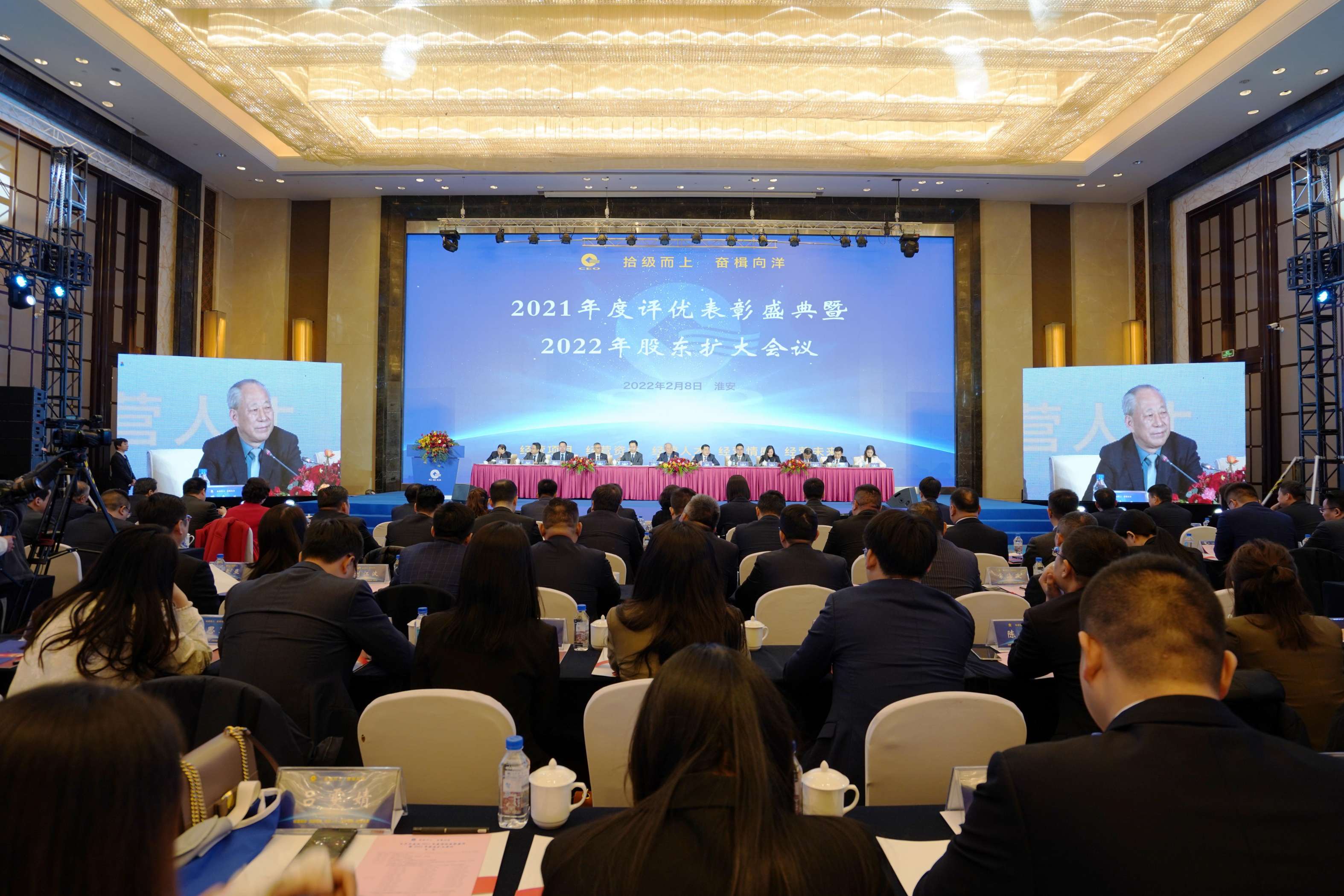 2月8日,太平洋建設2021年度評優(yōu)表彰盛典暨2022年股東擴大會議在江蘇淮安隆重舉行。嚴介和理事長蒞臨大會作戰(zhàn)略指導,嚴昊主席出席大會作總結部署,并率高管團隊為獲獎者頒發(fā)榮譽證書及獎金,太平洋建設顧問委員會主任張蕓芹參加大會,為金牌員工頒獎。太平洋建設總部、各平臺、下屬各集團精英800余人參加盛宴。