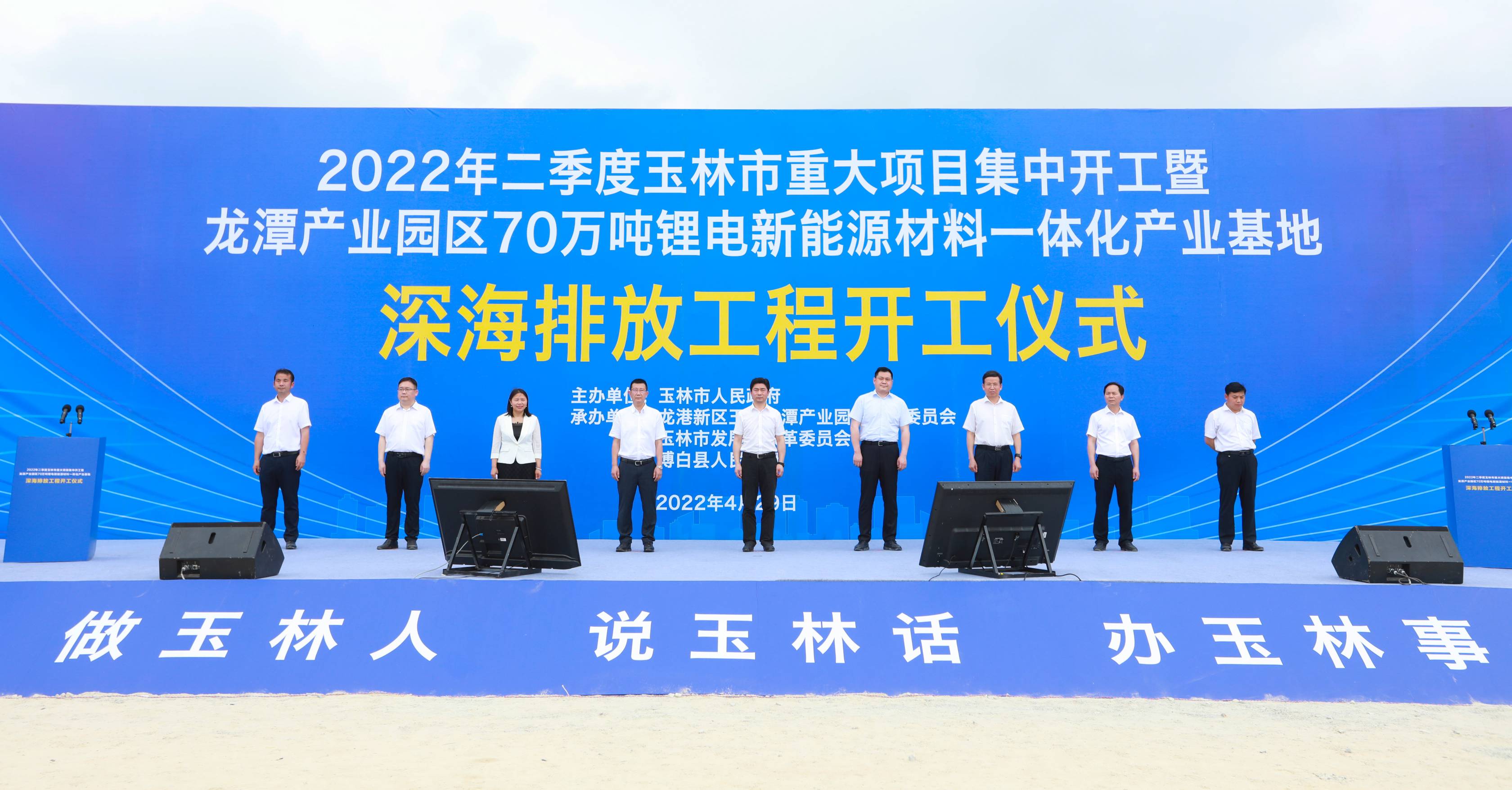 4月29日上午,2022年二季度廣西玉林市重大項(xiàng)目集中開工暨龍?zhí)懂a(chǎn)業(yè)園區(qū)70萬(wàn)噸鋰電新能源材料一體化產(chǎn)業(yè)基地深海排放工程開工儀式在廣西玉林博白縣隆重舉行。