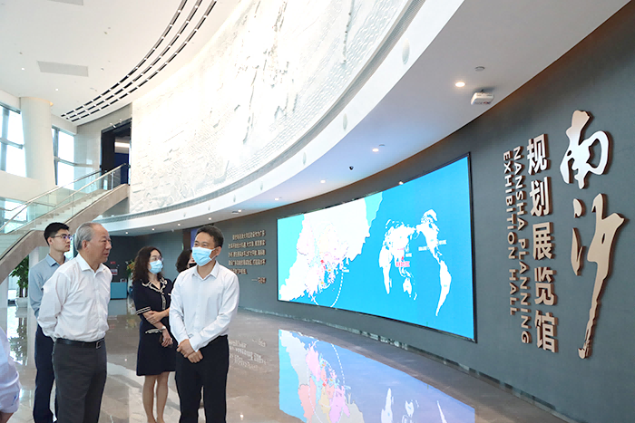 考察中,在南沙區(qū)黨工委副書記謝偉陪同下,嚴介和一行參觀了廣州南沙區(qū)規(guī)劃展覽館,深入了解了南沙區(qū)建設規(guī)劃發(fā)展狀況。