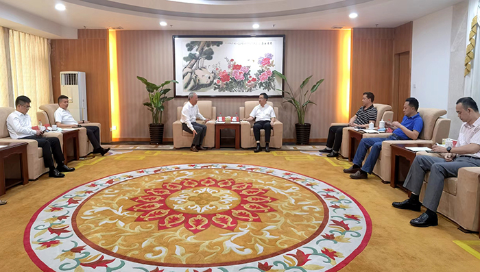 5月11日上午,嚴介和理事長應邀在廣東東莞同東莞市城建局黨組書記、局長朱默河會談,雙方就推進政企合作、共建東莞基建進行交流。運河建工董事局主席胡童、滬商建設董事局主席仉曉龍陪同。