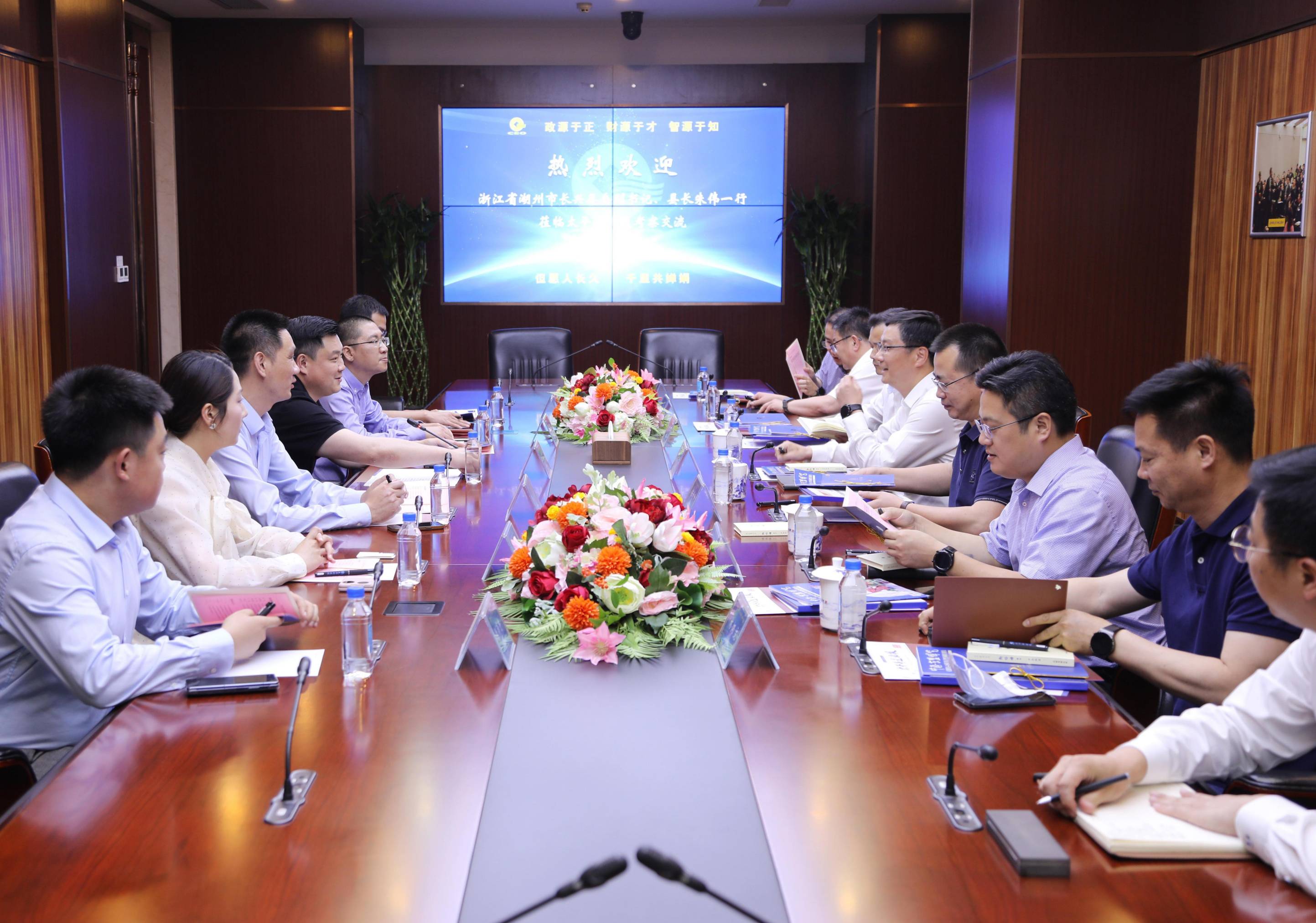 5月23日,嚴昊主席在南京與浙江省湖州市長興縣委副書記、縣長朱偉會談,雙方就推進長興縣項目合作事宜進行深入交流。