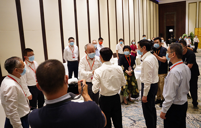 7月23-25日,民營(yíng)企業(yè)助力海南自貿(mào)港發(fā)展大會(huì)暨重點(diǎn)項(xiàng)目簽約活動(dòng)在??谂e行。海南省委常委、常務(wù)副省長(zhǎng)沈丹陽(yáng),全國(guó)工商聯(lián)黨組成員、副主席李兆前會(huì)見(jiàn)了與會(huì)的民營(yíng)企業(yè)家代表。太平洋建設(shè)創(chuàng)始人、莊嚴(yán)智庫(kù)理事長(zhǎng)嚴(yán)介和應(yīng)邀出席。